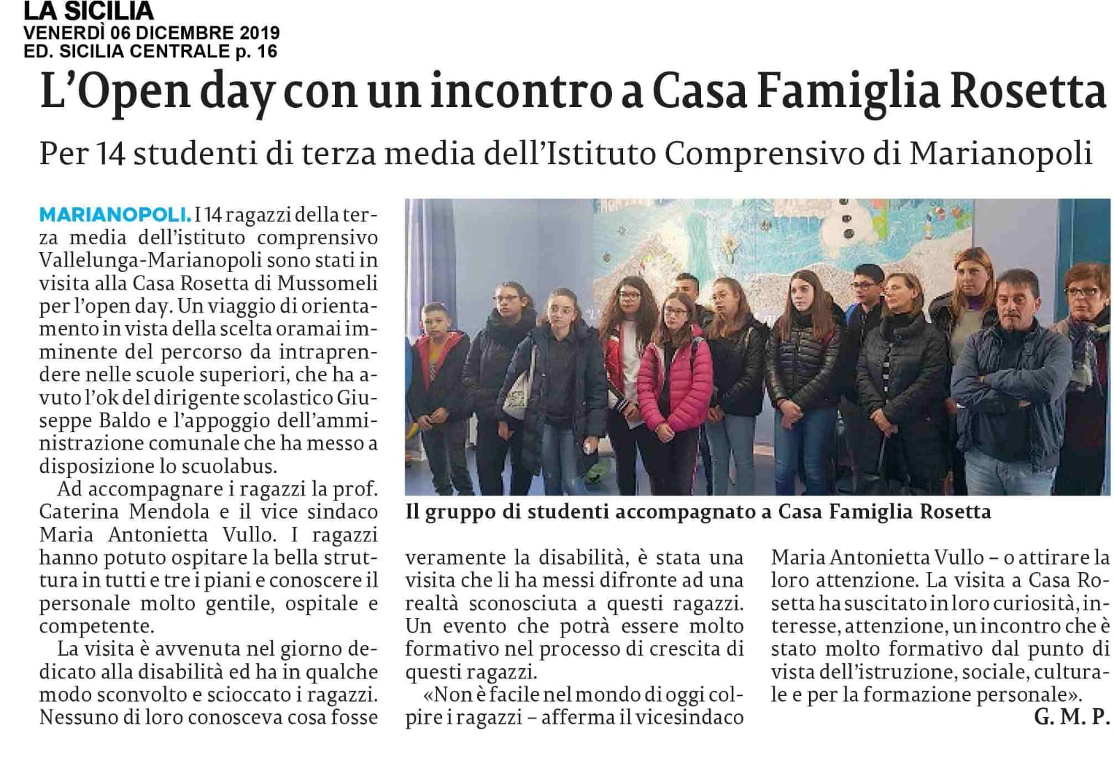Articolo progetto valorizzazione Beni Culturali Marianopoli